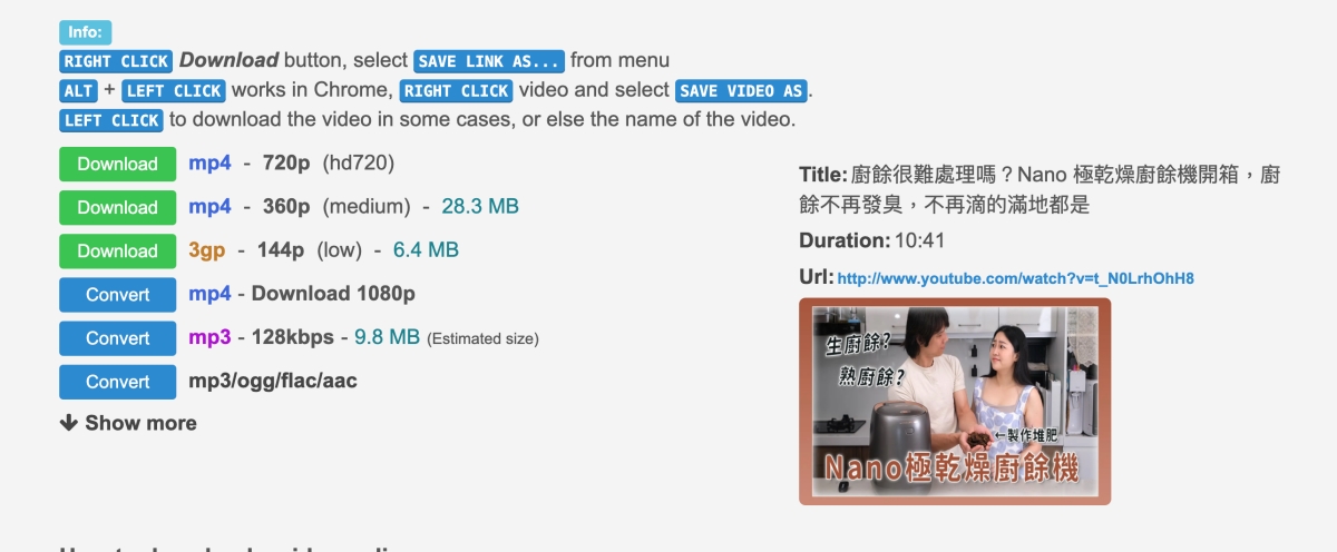這網站好處是表面沒什麼廣告,基本是在你下載點擊時才會跳出廣告視窗,這點我覺得比起外觀一堆廣告更能接受一點,最高支援 720p 解析度。