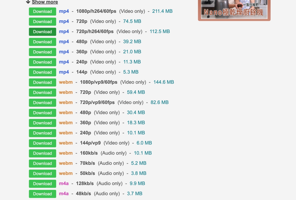 另外如果你想要下載 1080p 的解析度的話、最佳解法就是先下載有影無聲,再下載 mp3 檔案做合成就可以了。