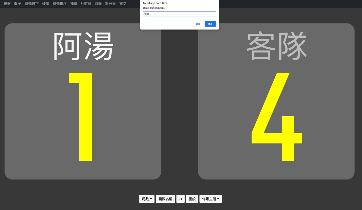 網站:https://tw.piliapp.com/scoreboard/在預設情況下就像這樣,打開直接就可以開始計分,螢幕按一下就會加 1 分。