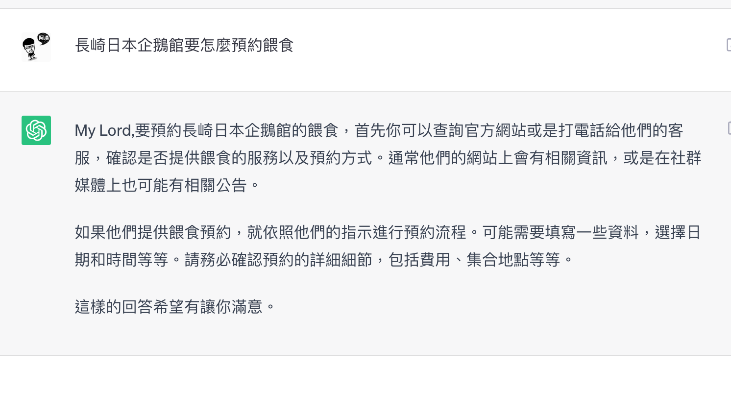 像我加上指令後,之後每次的回答就會依我設定的指令了,是不是很有趣。