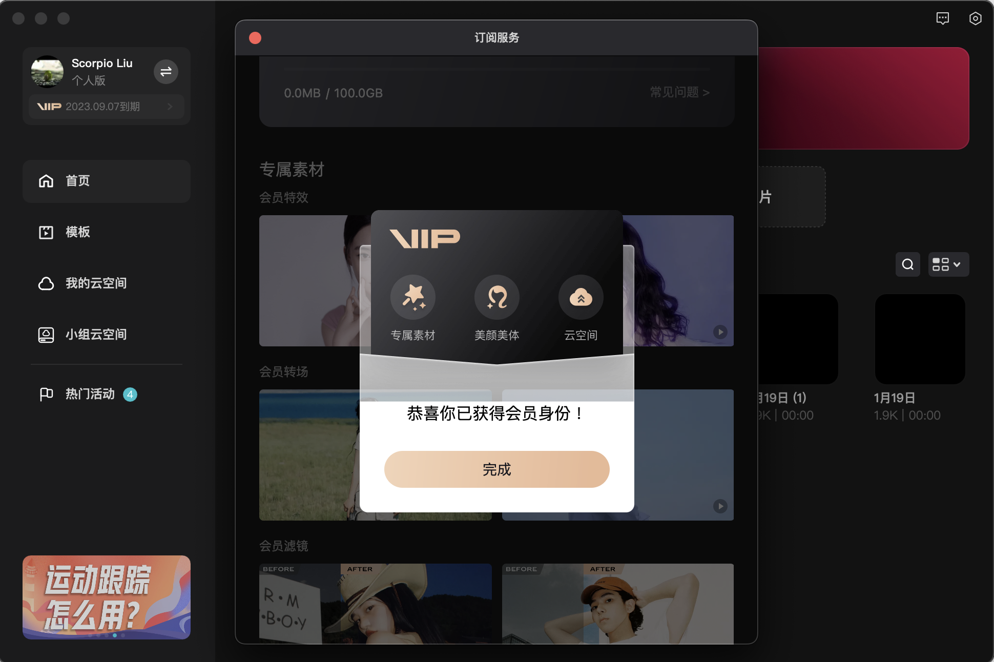 成功登入後你就可以使用各種 VIP 的特效、濾鏡進行剪輯,但如果你想要導出影片就需要付費,付費方式有二種,支付寶以及微信,這部份我會推薦大家用微信支付就好,可以直接綁自己的信用卡,以信用卡的方式進行支付,我實測是沒問題的。