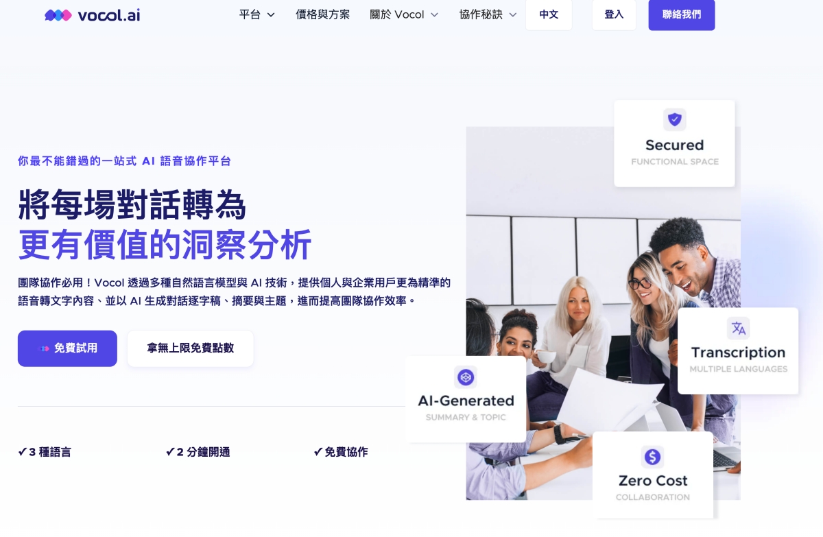 雖然現在網路上語音轉字的服務真的很多,透過 AI 來處理的也不少,但功能總是東缺西少,免費的就算堪用,但這世界上就這様,一分錢還是一分貨。 Vocol.ai 的定位跟其他語音轉文字的服務有越來越明顯的區隔,對於工作者跟管理者來說,已經跳脫單純逐字稿用途,更趨近一站式的個人工作或協作平台。