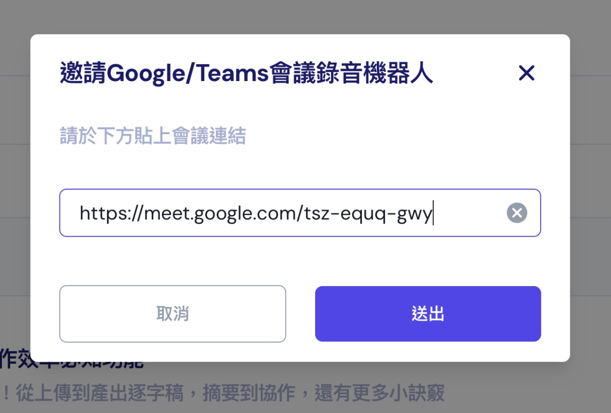 再到 Vocol.ai 剛加入會議的地方貼上會議連結送出。