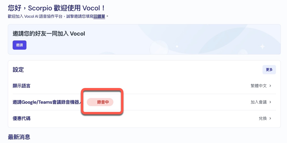 Vocol.ai 結合線上會議功能