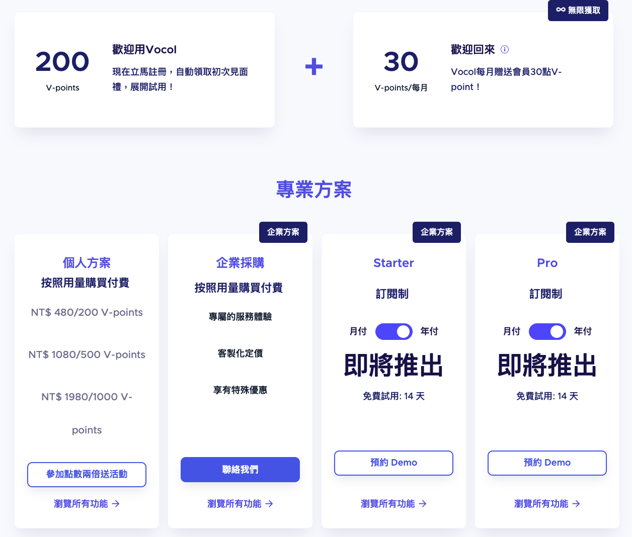 相關方案也給大家參考,原則上首次註冊就有免費 230 V-points 可以使用,真的蠻佛心的,因為 230 V-points 就可以轉換不少的內容,第二個月開始每月都會自動加血 30 點,只是沒用完不會累積,大家要用好用滿。