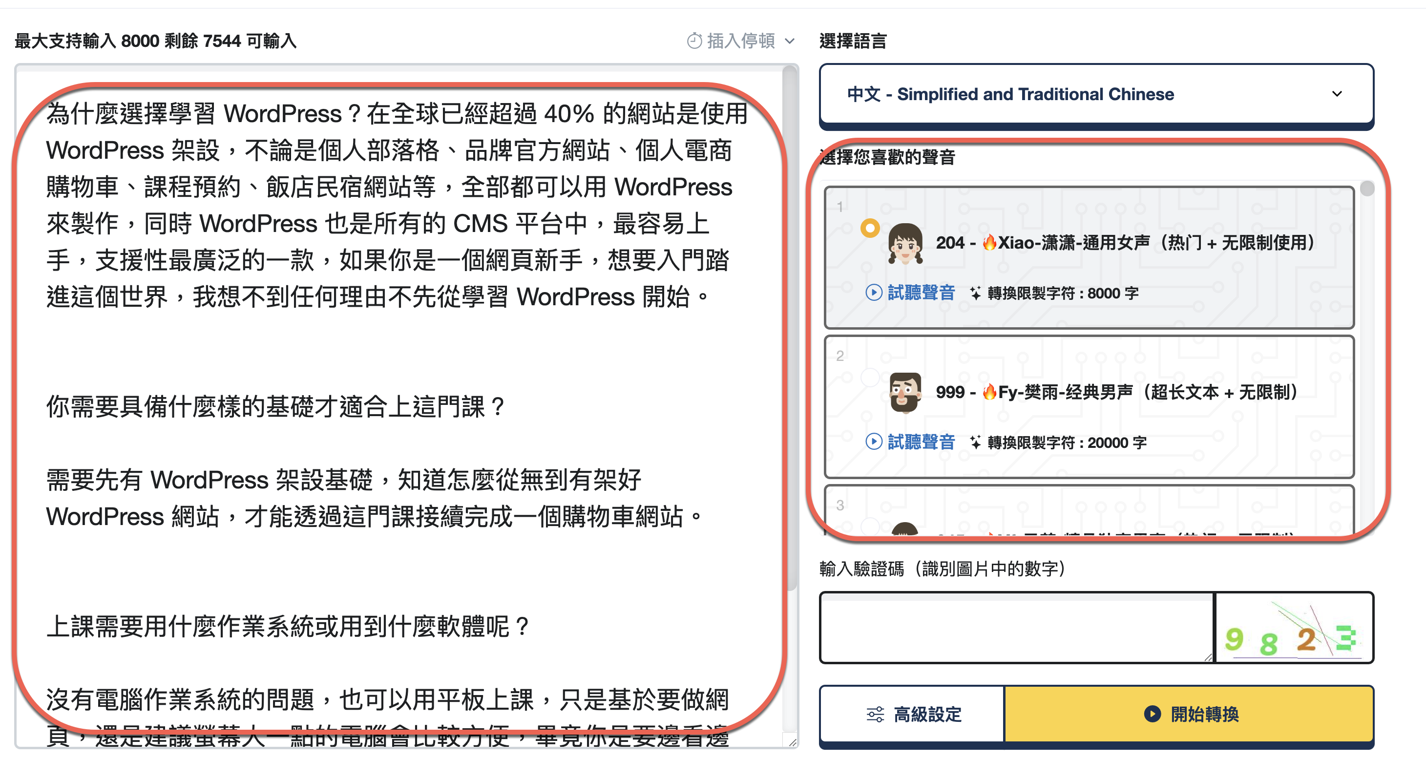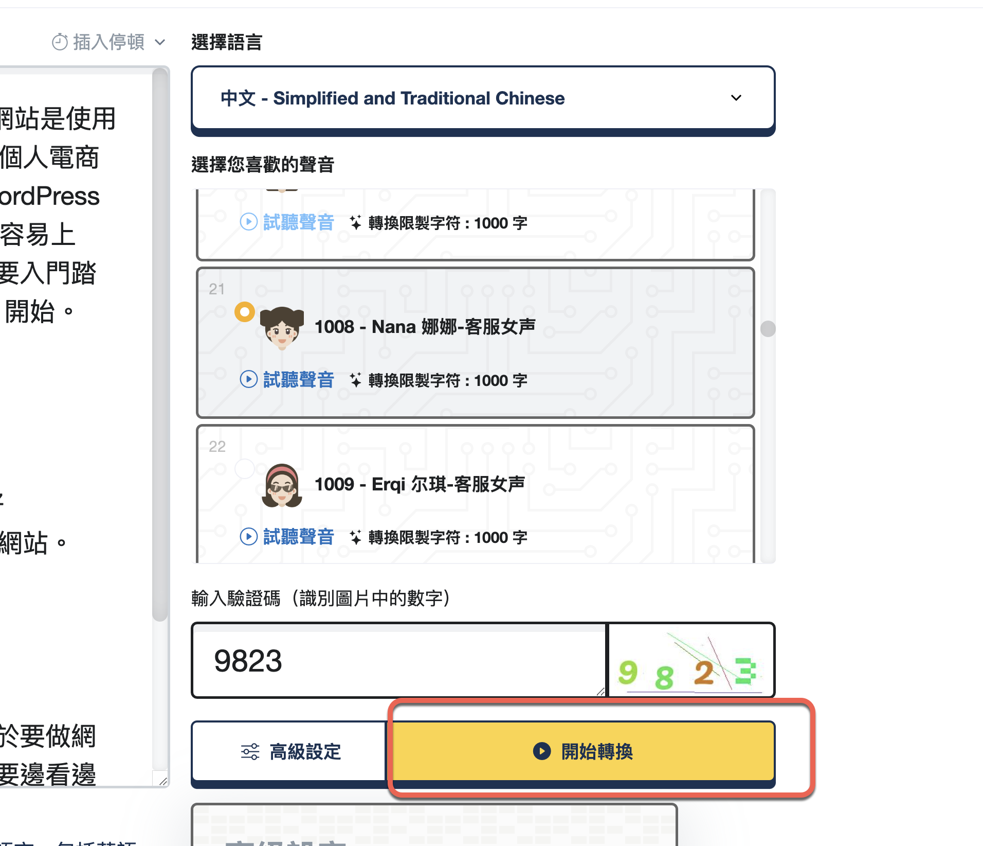 最後按下開始轉換,依照你的字數等待的時間長度不一定,像我這様幾百個字,不到 10 秒就轉換完畢。
