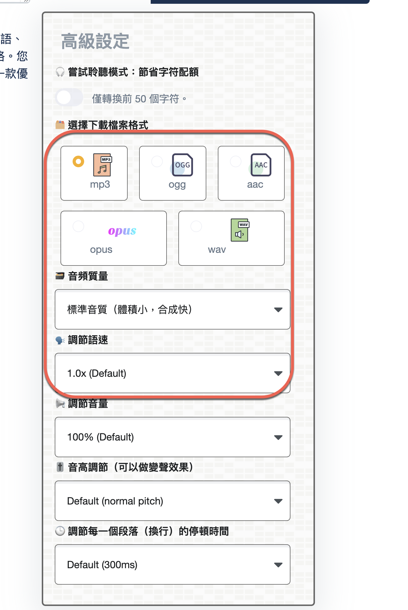 下方的高級設定裡有更多選擇可以使用,比如下載格式,音質等。