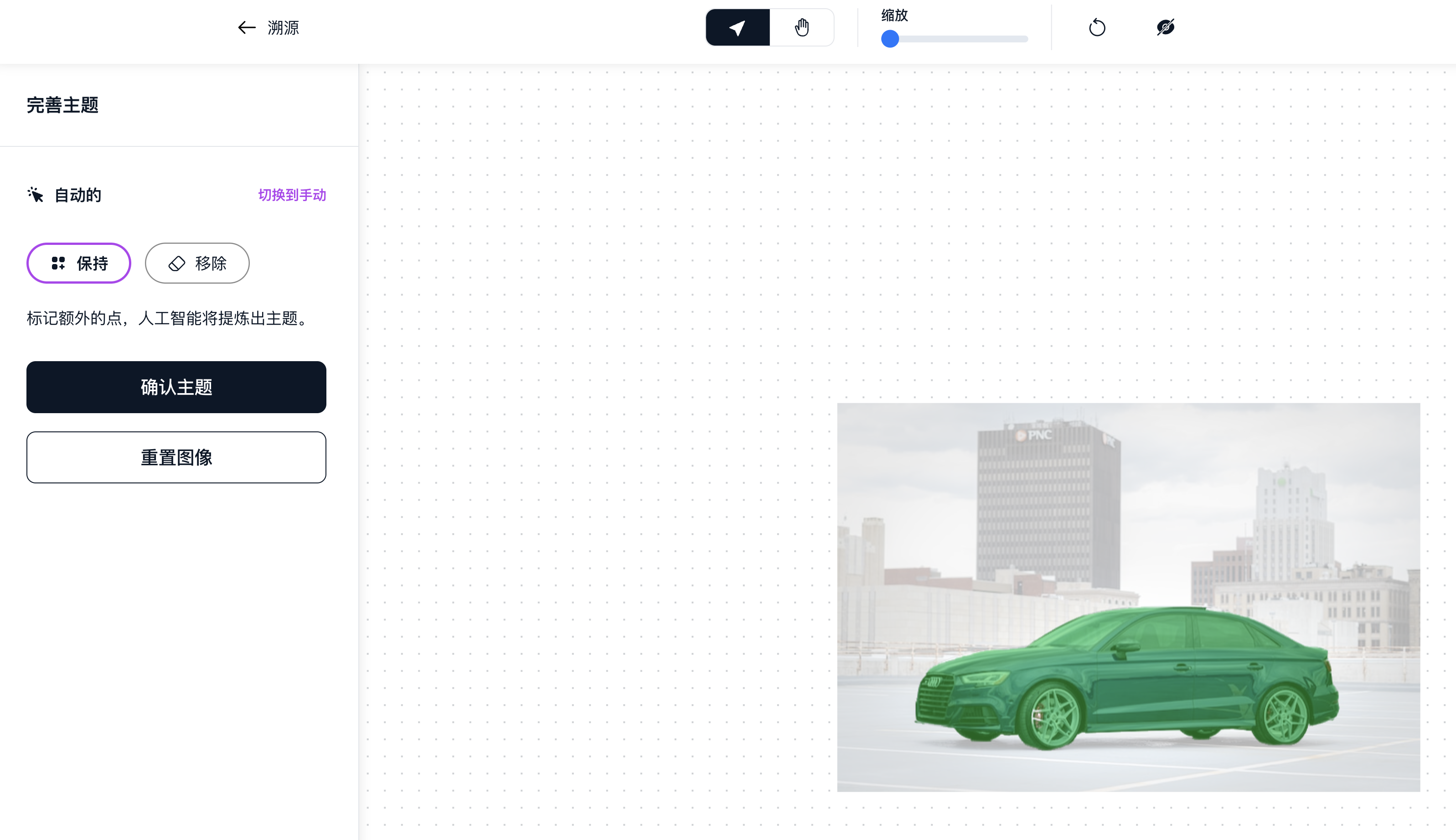 如果你的主體沒有被自動判斷的很好,也可以點擊完善主題進來手動調整主體的範圍,確認沒問題再退出去重新辨識。
