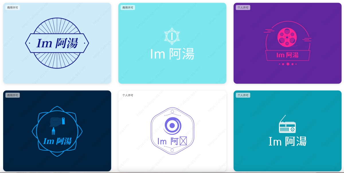 登入成功後就可以重新按一次產生,接下來就可以一直往下無限制的生成 Logo,大部份都蠻有質感的,相當不錯啊,每張圖的左上角也都有標示是個人用還是商用。