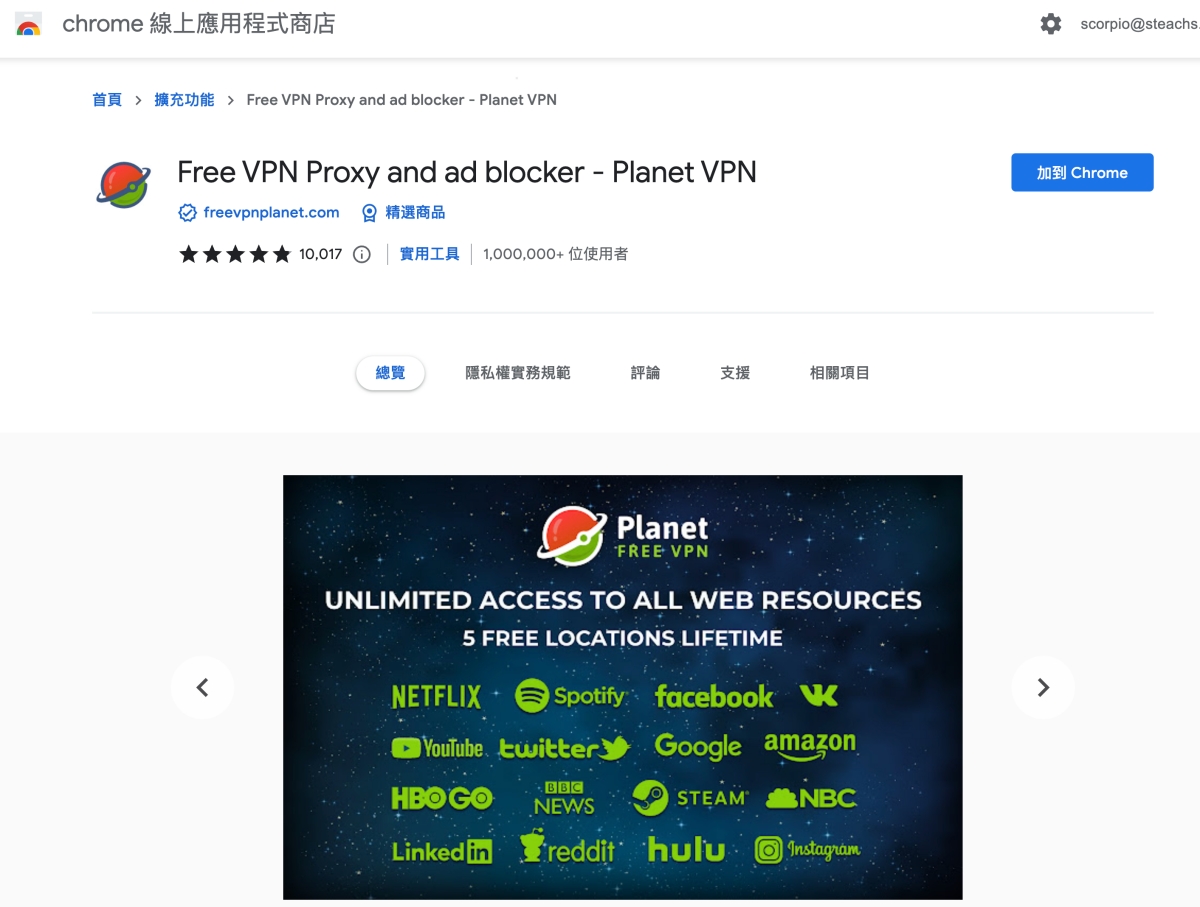 VPN 服務這幾年大家應該愈來愈不陌生,因為很多時候都會用到,而今天要來分享的這個 VPN 服務 Planet,一樣是免費的,不過它也有付費的方案,網站上主打的就是免費的 VPN 服務,而且支援多平台,包括像是 Windows、macOS、Linux 以及手機雙平台 Android/iOS,而瀏覽器的外掛也基本上都支援,算是相當不錯,值得一試。