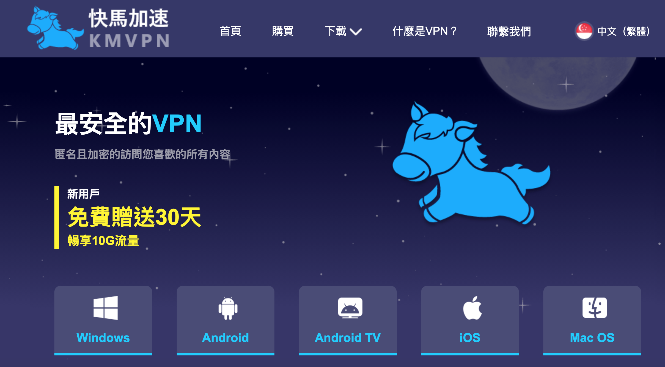 這快馬加速 VPN 是新加坡的公司,各平台都有支援,而這免費使用的權限,主要是針對電腦,每台電腦可以免費使用一次,不用註冊就能用 30 天或 10GB 的流量。