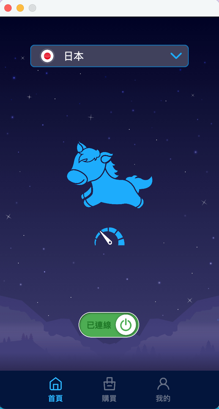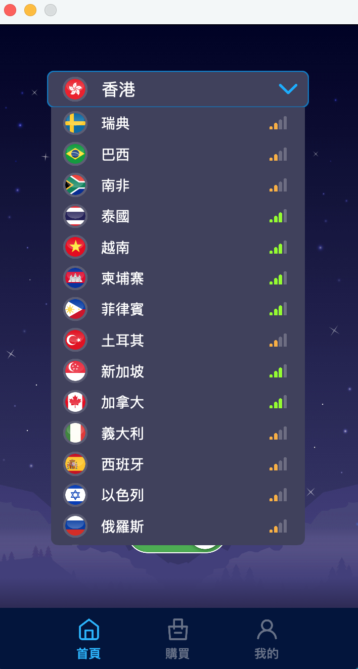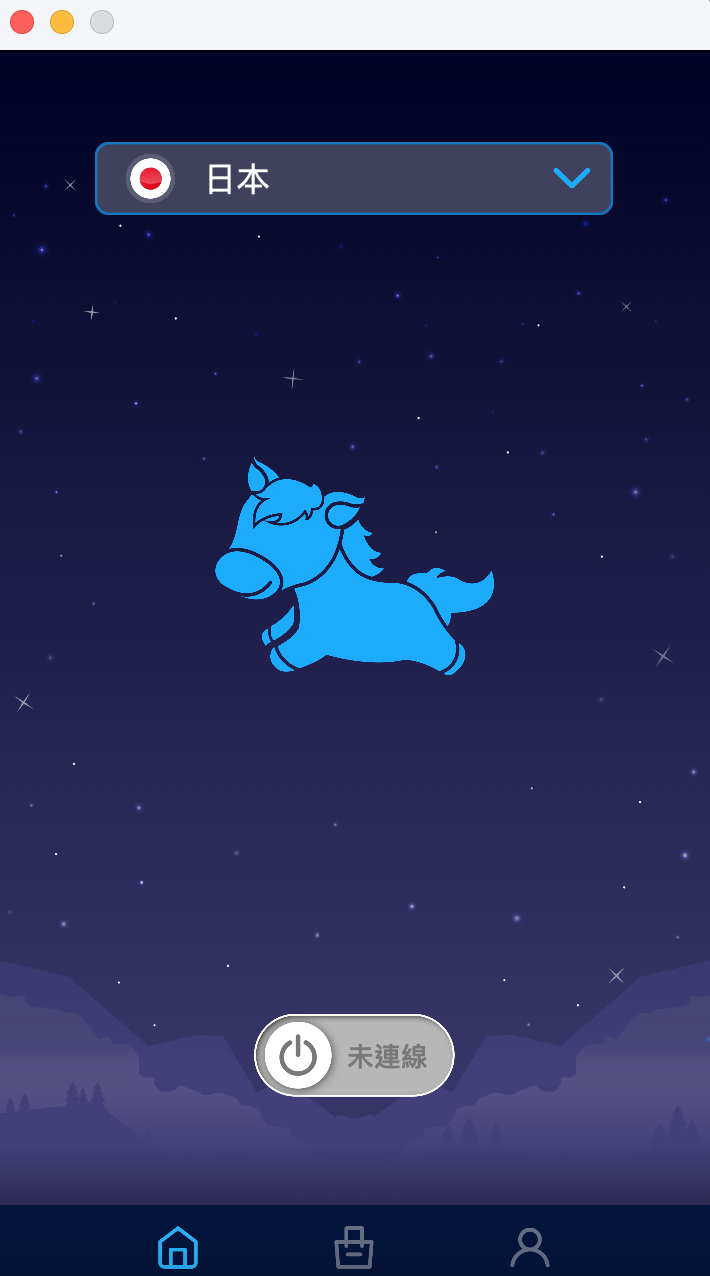 安裝完後,介面使用很簡單,只有選地區跟連線。