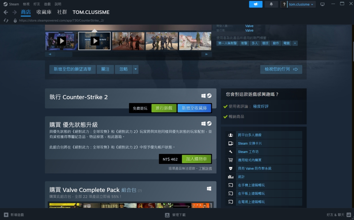 steam 官方網站:https://store.steampowered.com/下載 steam 安裝後,直接搜尋 Counter-Strike 2,就能找到這款遊戲。
