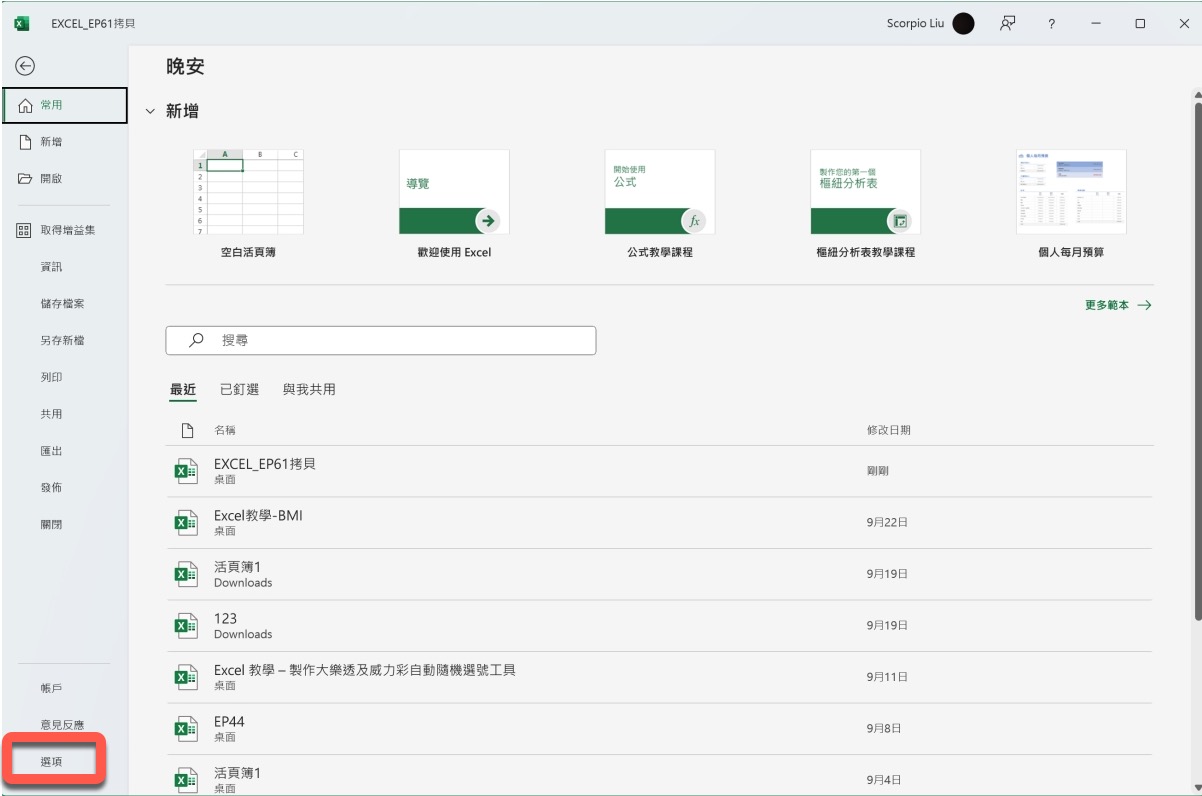 打開 Excel 後點擊左上角的「檔案」,然後像我現在這畫面的主題是白色,不是綠色的。