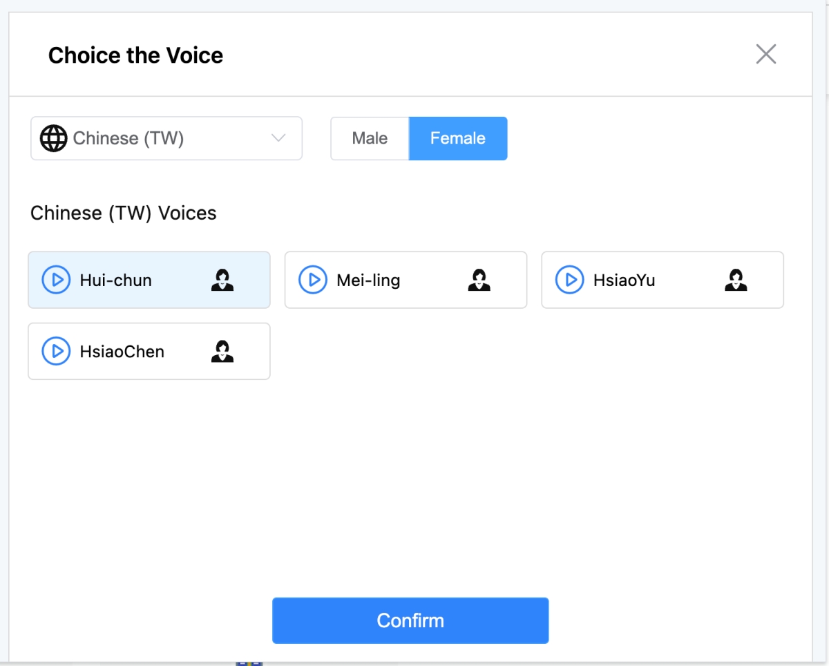 比如我選擇 TW 後再選擇性別及聲線,每個聲線真的是大不同,有接近機器音的,也有比較自然的。