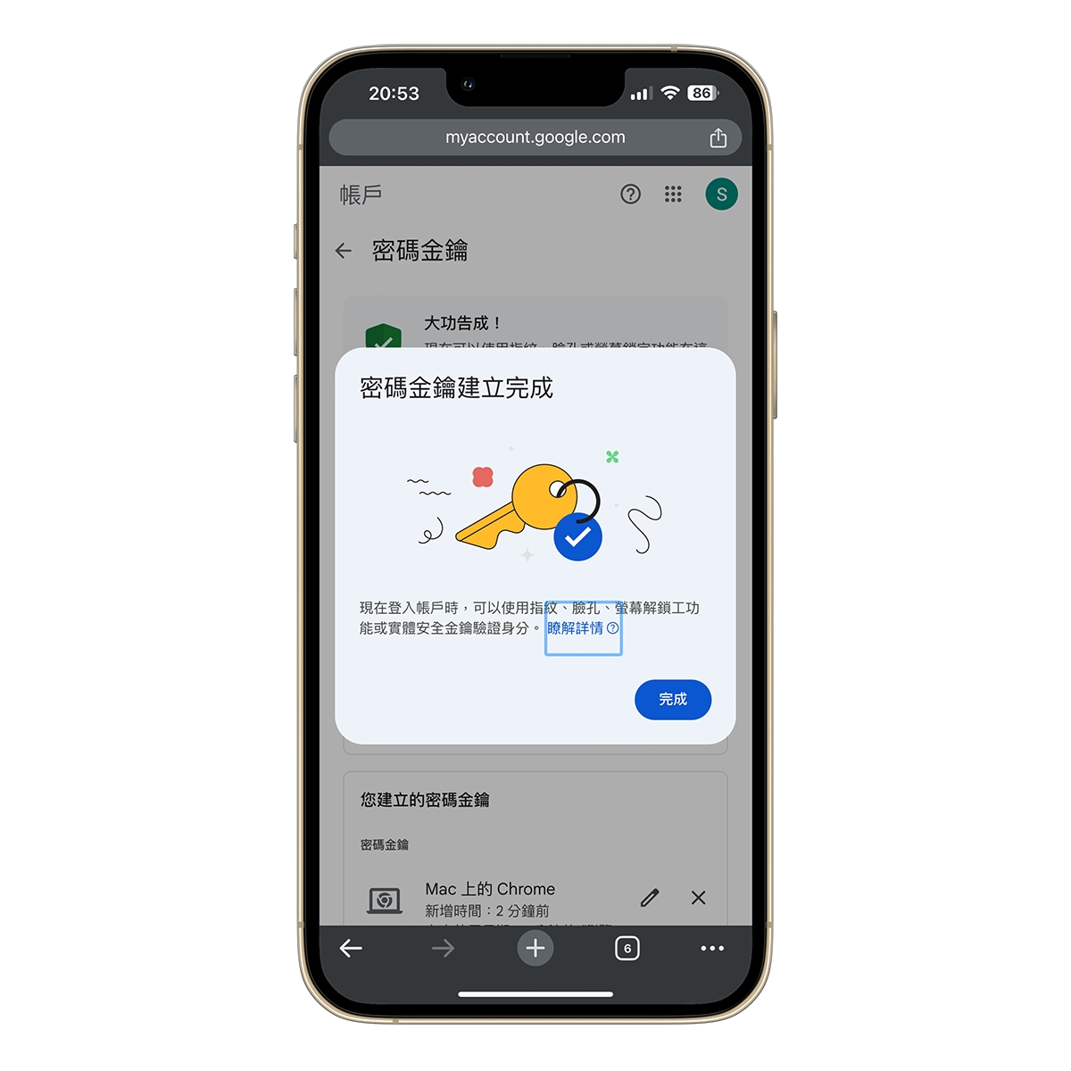密碼金鑰設定頁面:https://myaccount.google.com/signinoptions/passkeys