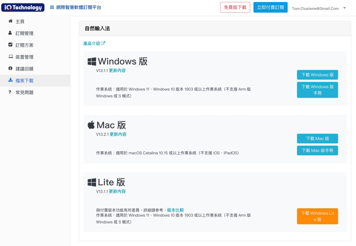 註冊並登入後,點擊左側的「檔案下載」,就可以下載 Windows 可用的 Lite 版了。