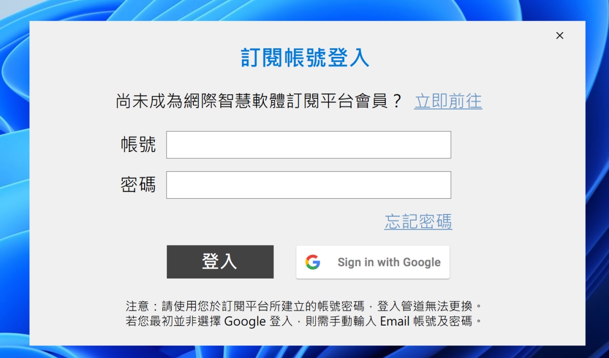 安裝過程的最後會要求你登入帳號,登入後就可以完成安裝,而每個帳號只能用於一台裝置(免費版),因此如果你有多台設備要使用,就分開帳號吧,多註冊幾個。