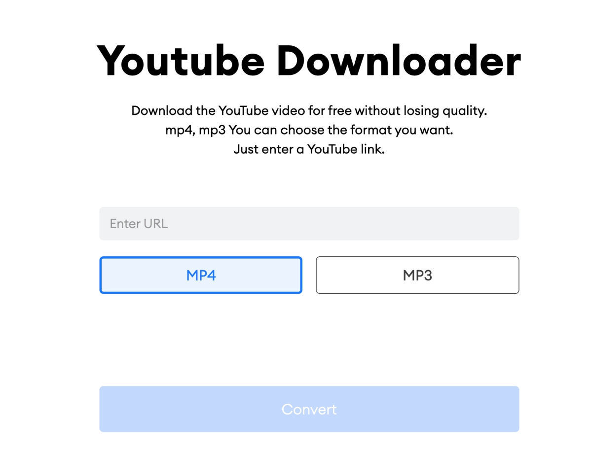 網站:https://www.ssemble.com/youtube-downloader/進入網站後,先選擇你要下載 MP4 還是 Mp3,再將影片網址貼上去。