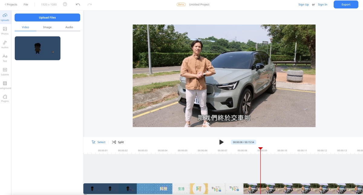 它的線上編輯工具長這樣,做一些基本的剪輯問題不大,也蠻方便的。
