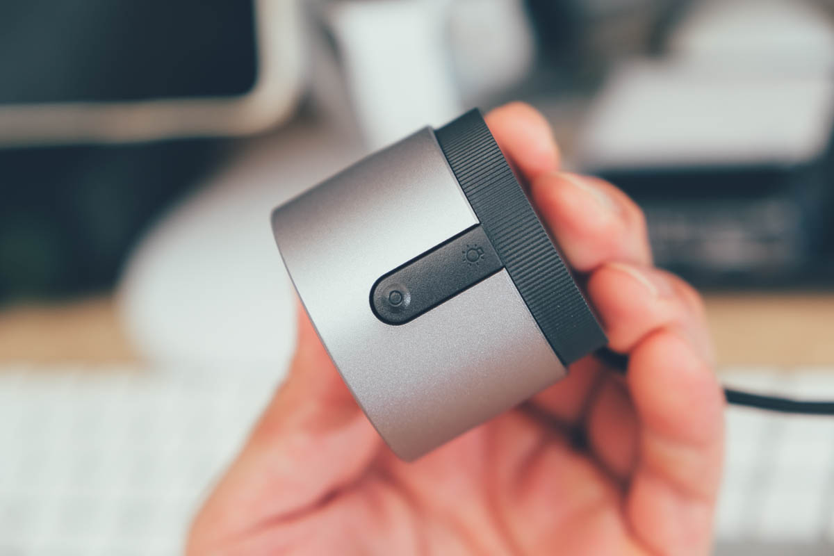 而鏡頭外圍這一圈是補光燈,最主要可以用在拍攝近物時使用,平常視訊時如果真的太暗也能起到補光的效果。