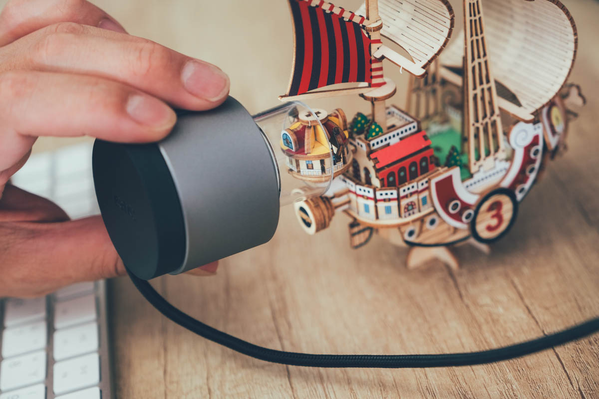 ideaCam S1 也因為分離設計可以隨時從支架上輕鬆的拿下來使用,透過手持的方式直接展示局部,特別是可以搭配 15 倍放大鏡來使用,對於細節的展示有莫大的幫助。