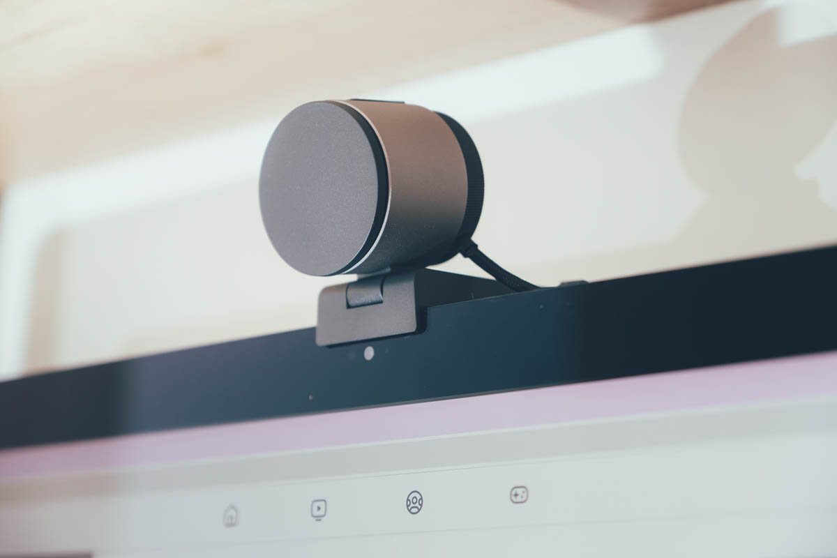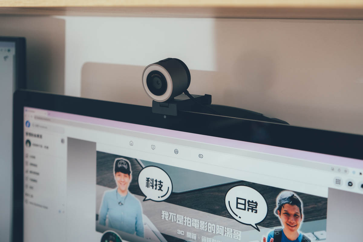 首先,支架的部份非常的札實,摸起來的質感我非常喜歡,尤其這類螢幕上方的支架,很多都是做固定角度,比較沒那麼好調整,但 ideaCam S1 Pro 提供的支架可調角度非常彈性,而且有足夠的重量,不會隨便就被移動到。