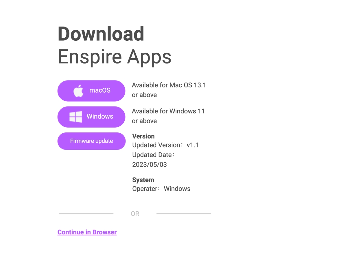 EnSpire 支援用軟體搭配,電腦系統目前支援 macOS 及 Windows 雙系統,也可以不安裝軟體直接在瀏覽器上直接使用。