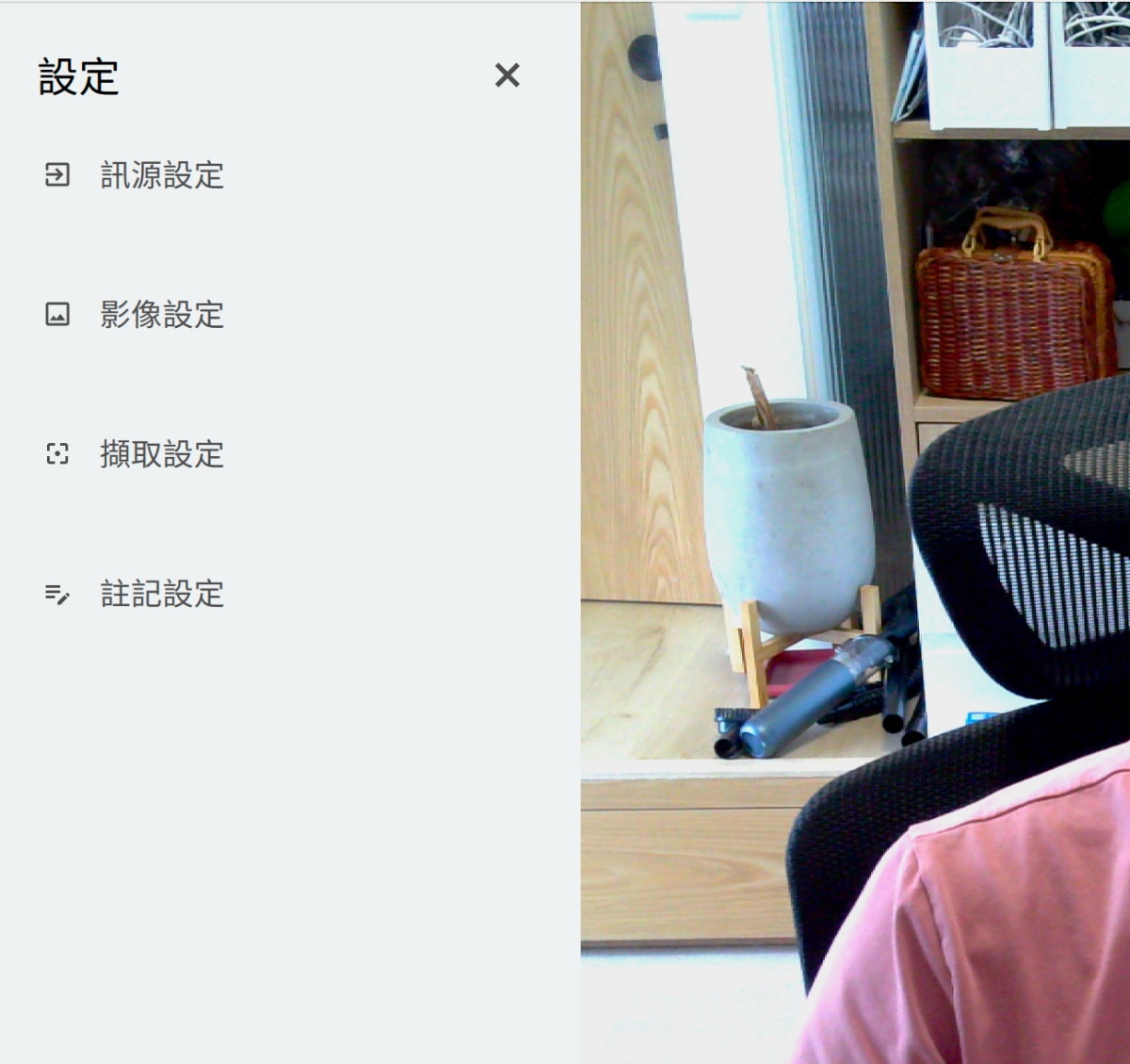左側可以調整視訊、聲音來源、影像設定以及擷取和註記相關設定。