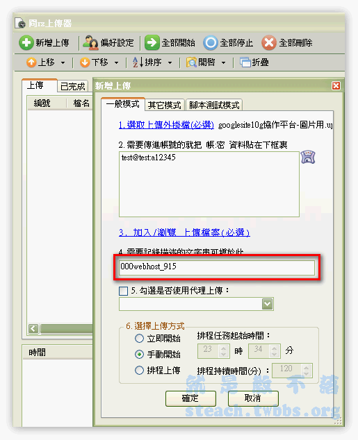 接下來就是要考慮要如何上傳,才能方便再之後修改路徑的問題原先站長的圖片路徑如下: http://tomclusisme.myweb.hinet.net/steach/圖片資料夾/圖檔.jpg 而Google協作上傳後的路徑前面也是固定的 https://steachs.com/images/uploads/圖片資料夾/圖檔.jpg因此在上傳Google協作平台時,創建檔案庫的名稱就要跟原圖片資料夾名稱一樣,如下圖,描述文字欄位就是指定檔案庫創建的名稱,利用冏rz一一加入上傳,如果檔案庫命名和原資料夾不一樣的話,之後修改文章的圖片路徑就會很麻煩。 ※如果看不清楚可點擊圖片觀看原圖大小哦!