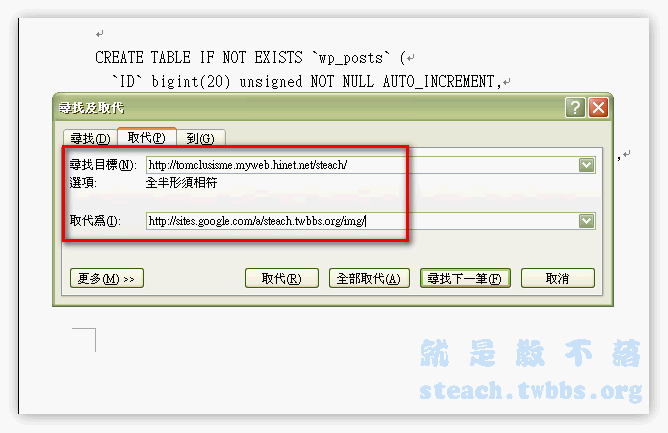 下載回來後先複製備份一份起來,以免失敗還可以復原,打開資料表後,將原先的圖片網址http://tomclusisme.myweb.hinet.net/steach/前段取代為Google協作的https://steachs.com/images/uploads/