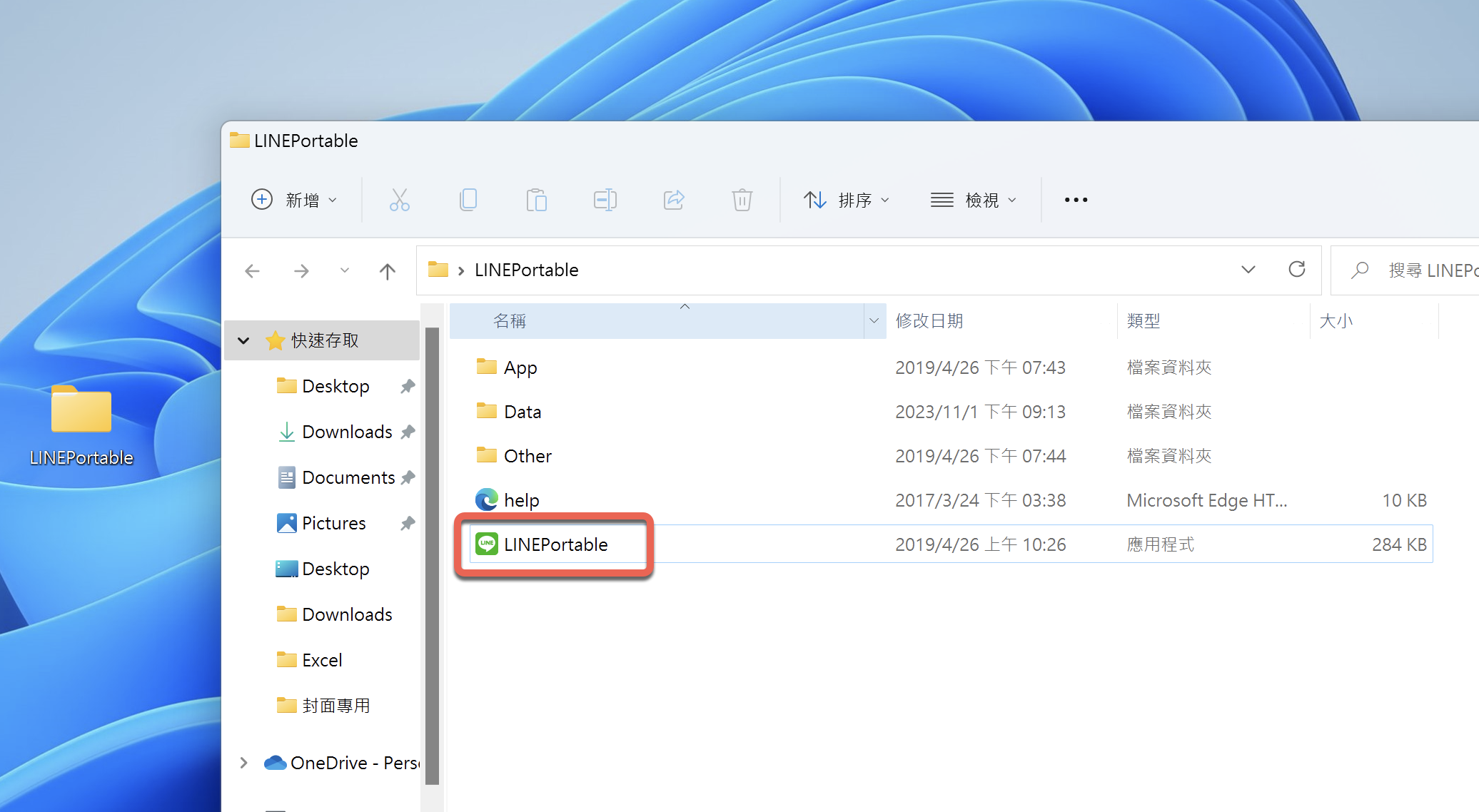 下載後解壓縮,直接執行裡面的 LINEPortable。