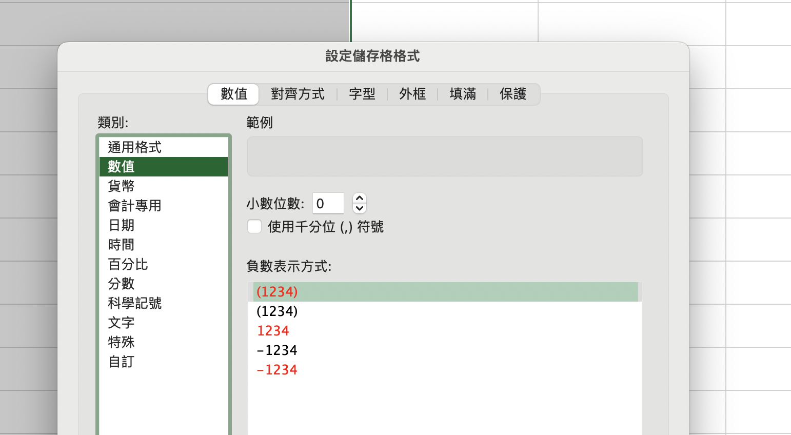 選擇數值並將小數位數改為 0。