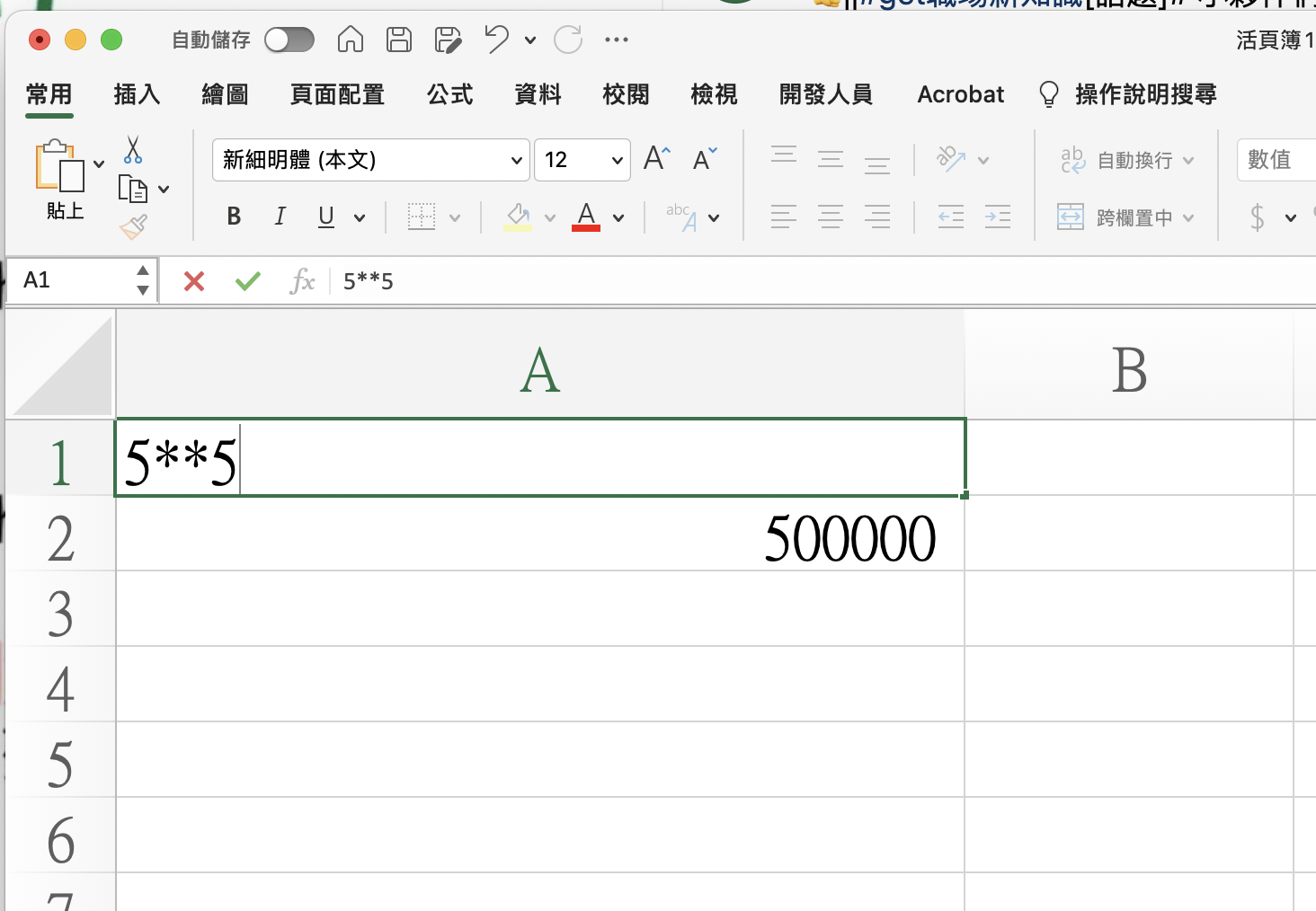 接下來就是見證奇蹟的時刻,以 50 萬為範例,就是 5 後面 5 個 0,這時你只要輸入「5**5」按下 Enter 後,就會變成 50 萬了,簡單的說 ** 後面接什麼數字就會顯示多少 0,如果輸入 5**13 那就是後面 13 個 0。