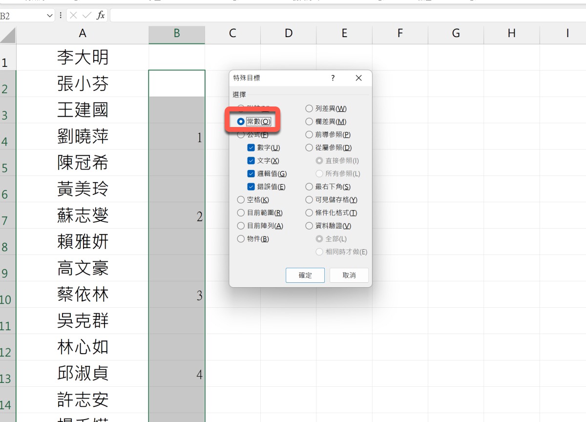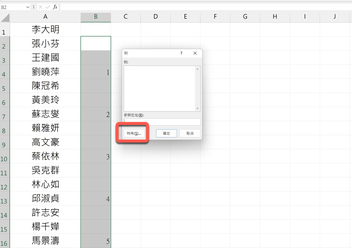 然後就會像這樣顯示,接下來按下 Ctrl+G,按下特殊。