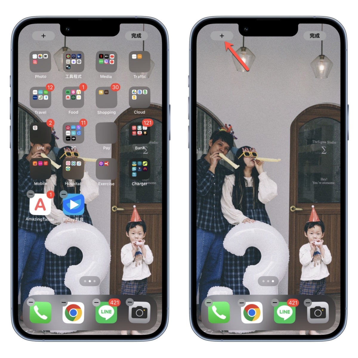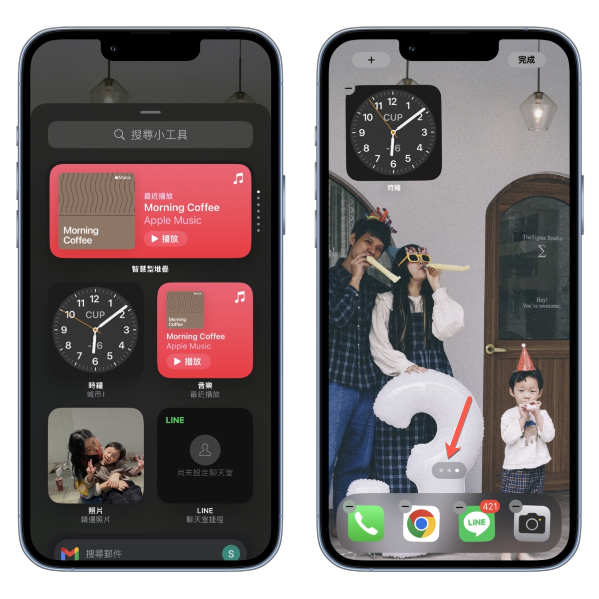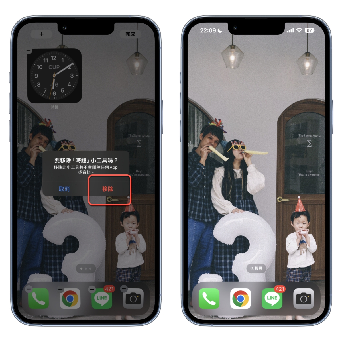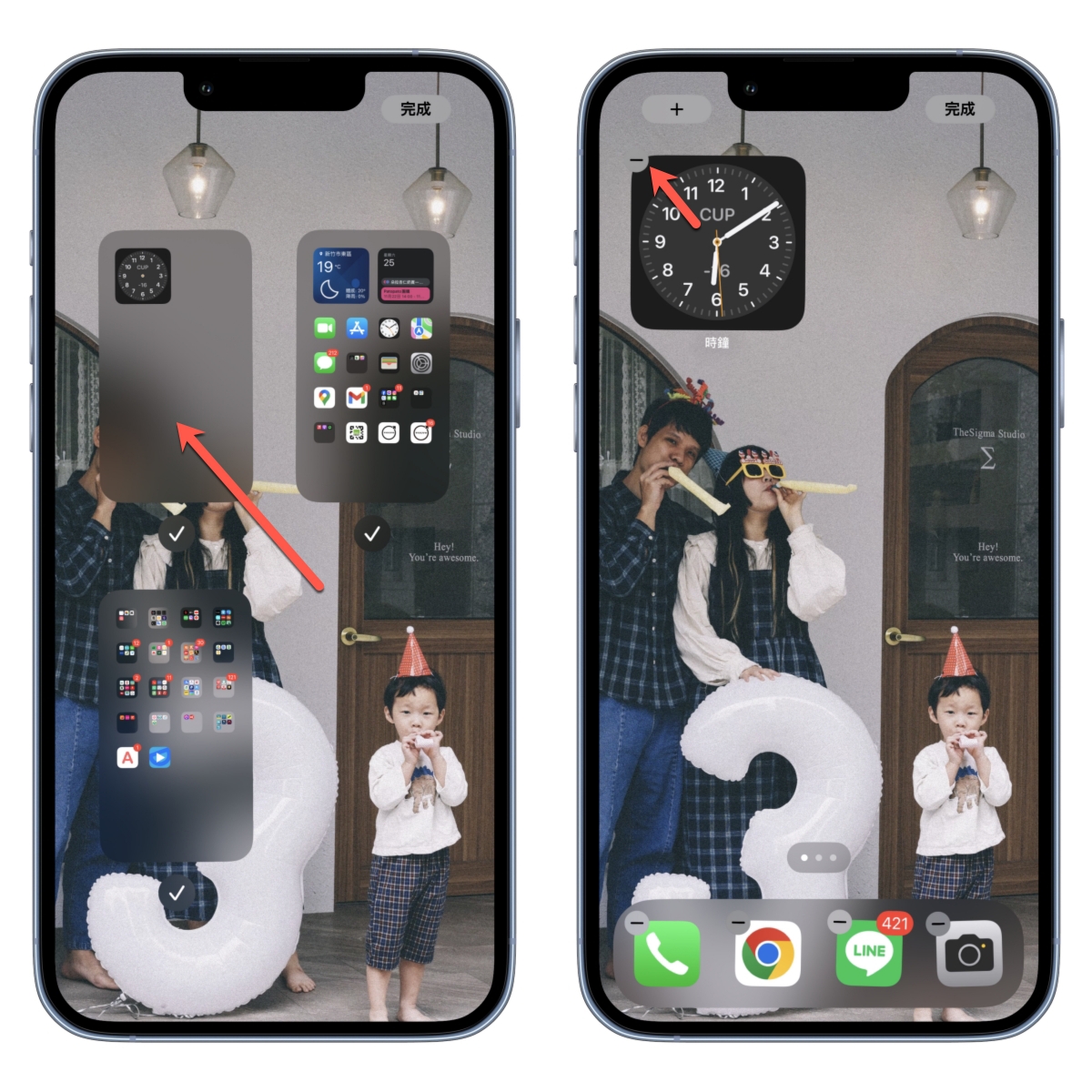 將剛剛新增的那頁主畫面拖曳到第一個,接下來回到主畫面後,將那小工具點擊移除。