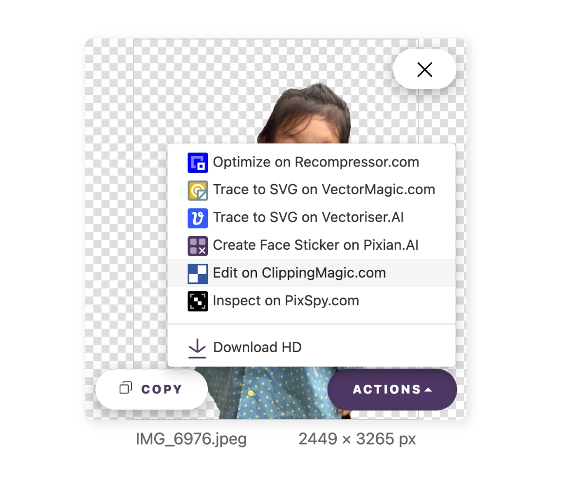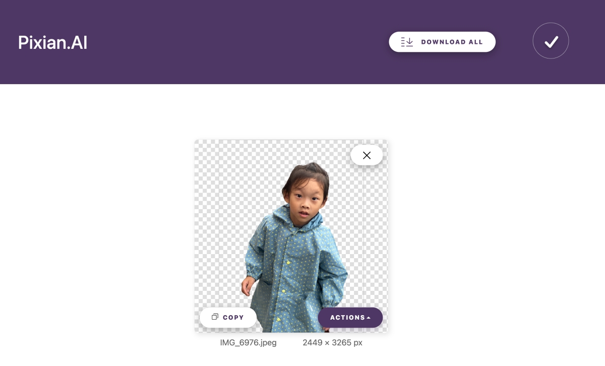 去背速度蠻快的,大概 5~10 秒就會搞定,然後跳到這個畫面,如果你一次拖曳多張照片,也會一次顯示在這裡讓你下載。
