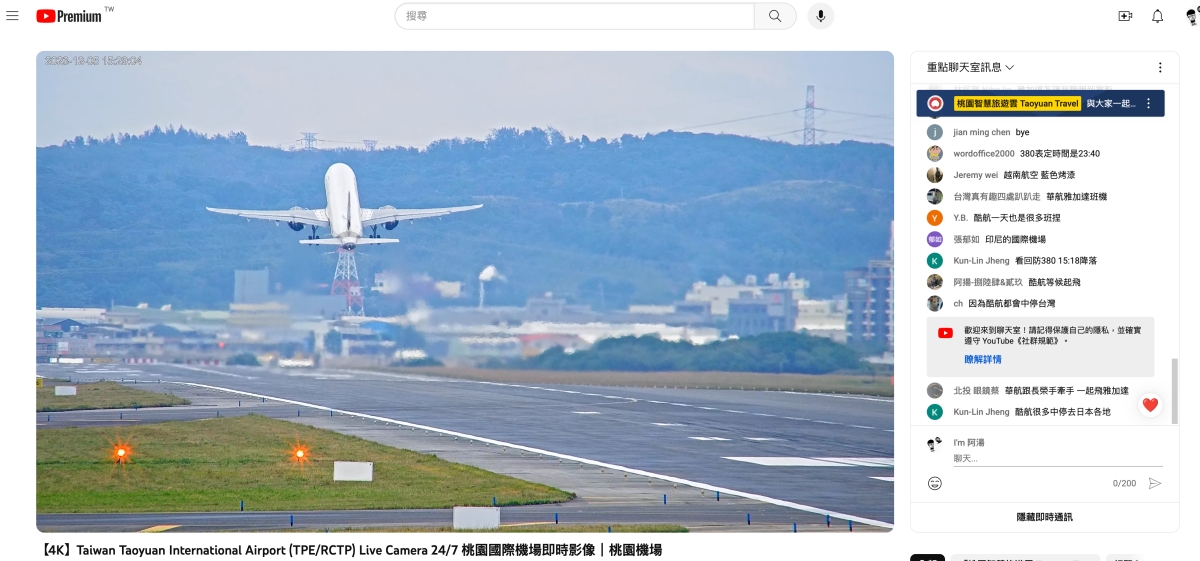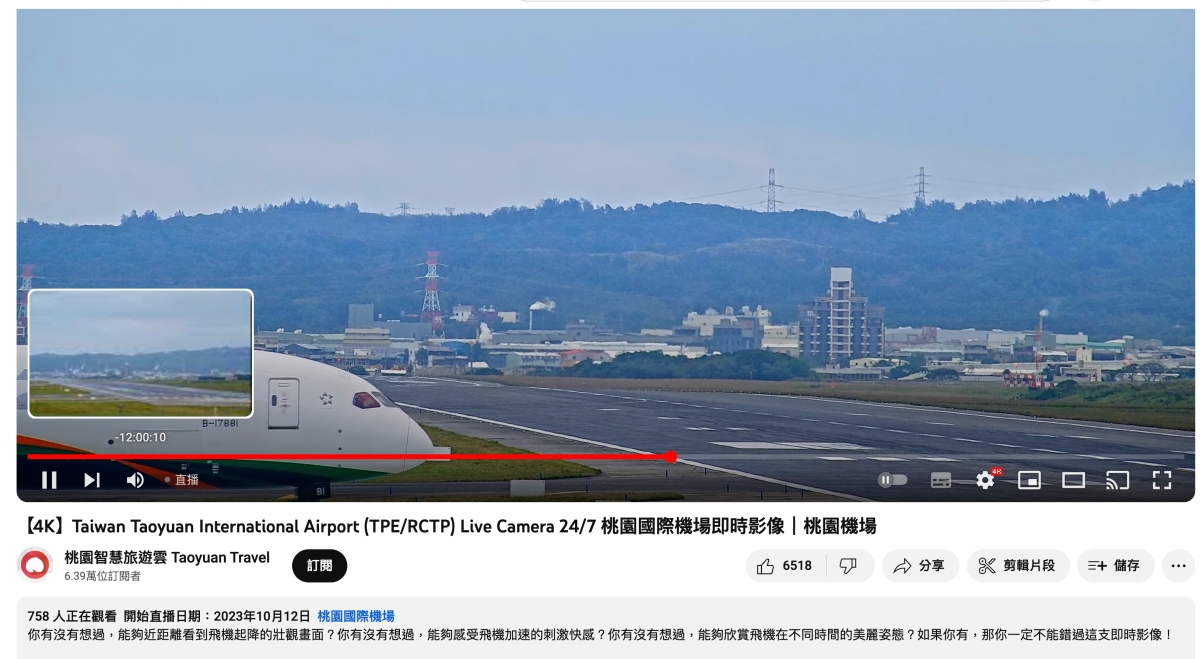 阿湯現在平均一年就出國一次,偶而想到會去桃園機場走走看看飛機(當然是帶湯包去),不過有時假日去看的話,人真的蠻多的,也不見得有停車位,想到疫情那個時候,去到桃機幾乎是包場的啊,不廢話,今天來分享一下,桃機有在 YouTube 上放置 4K 解析度的即時影像,你隨時透過 YouTube 就能看到飛機起降的直播,只要算好班機時間,就能看到畫面,其實還挺療癒的。