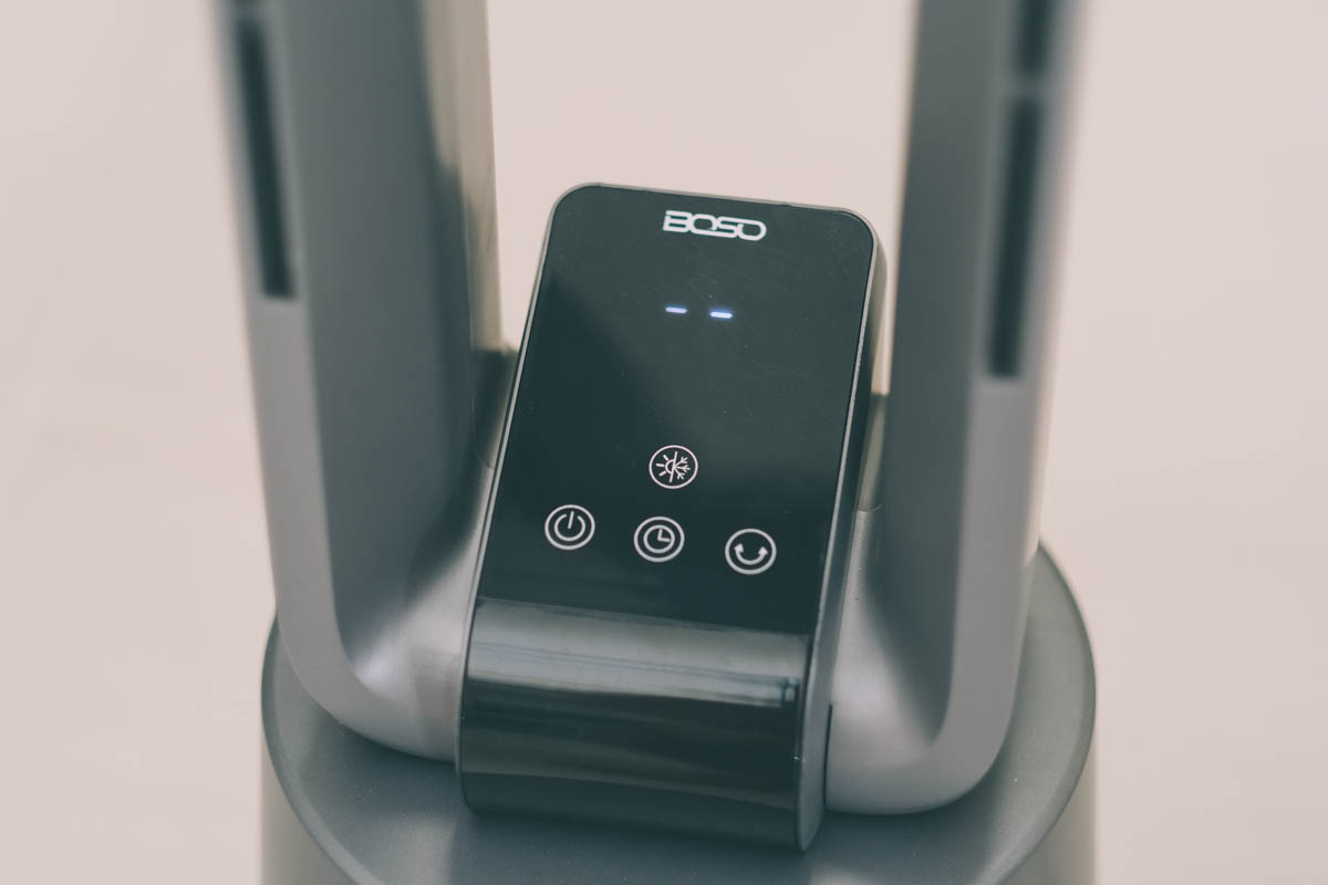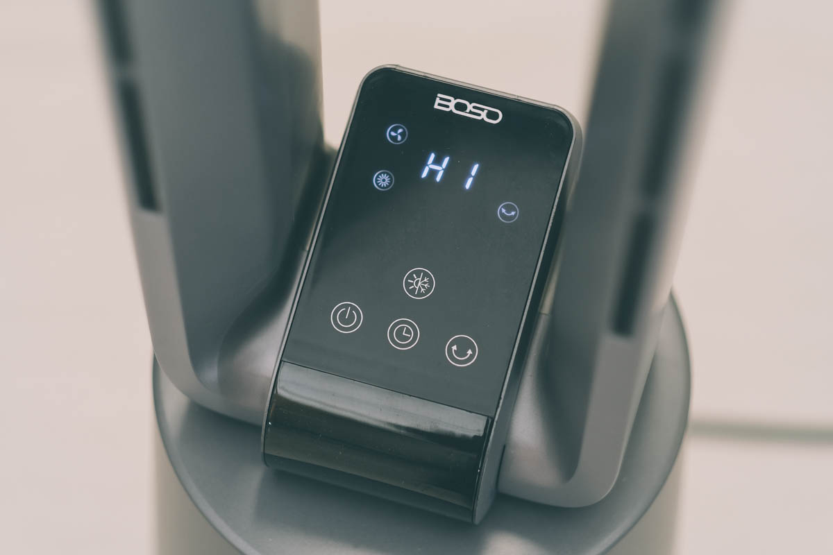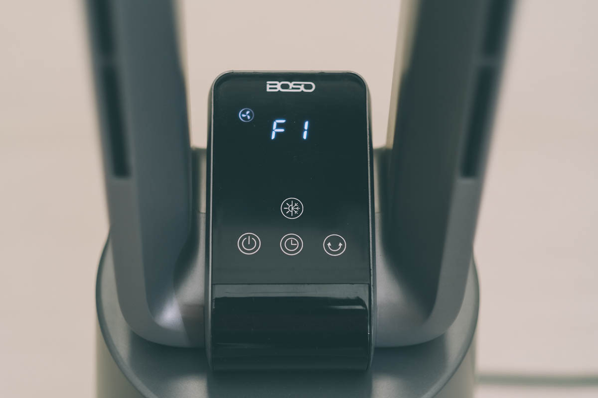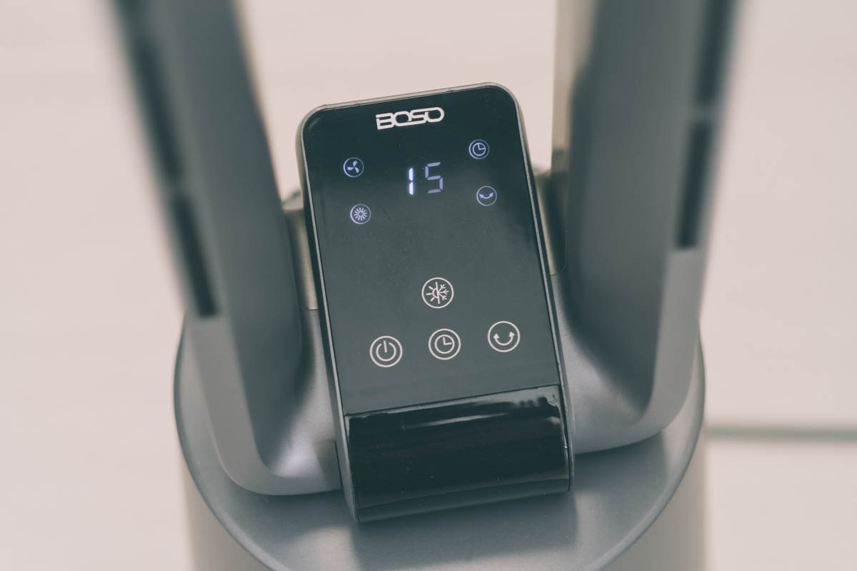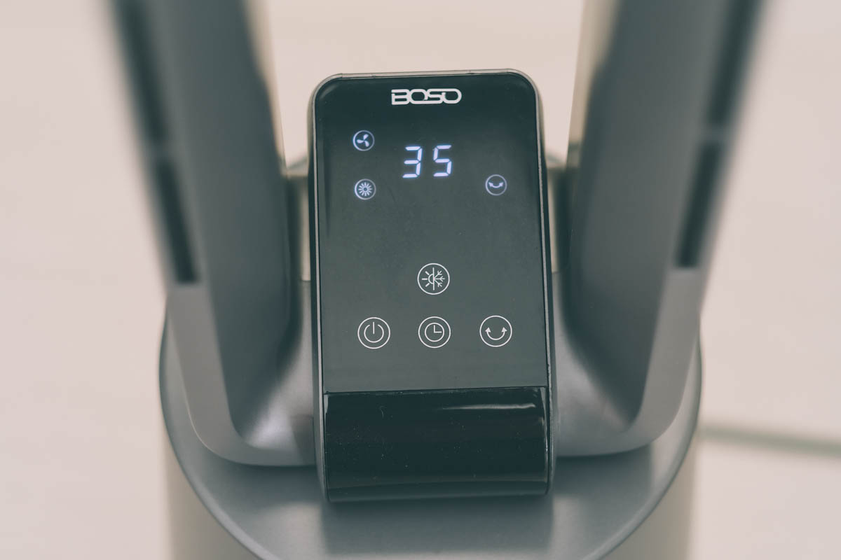 按鍵操作也設計的非常直覺,BOSO 冷暖風扇一共有二種控制方式,第一種就是直接透過主機上的觸控面板進行操作。