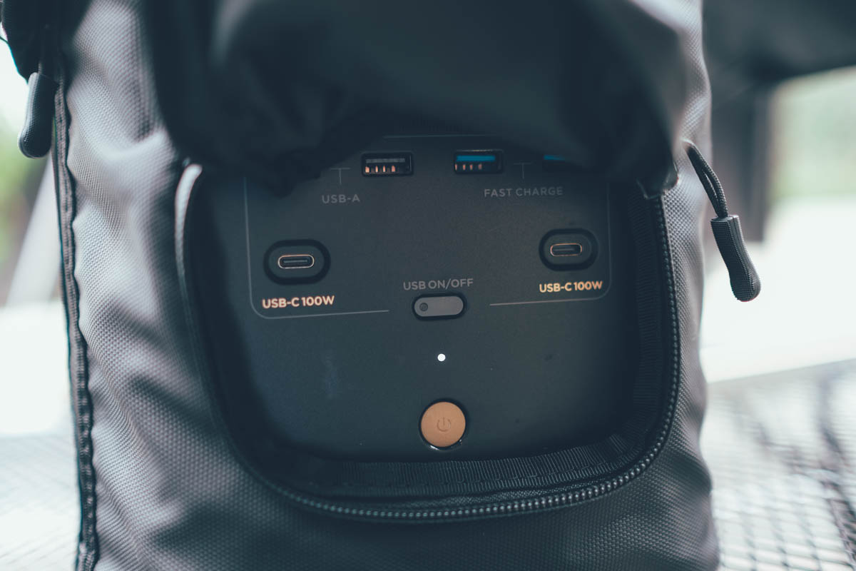 而我們要用到的充電線材,全部可以收納到頂部的空間,這包括放小露營燈都能放進去。