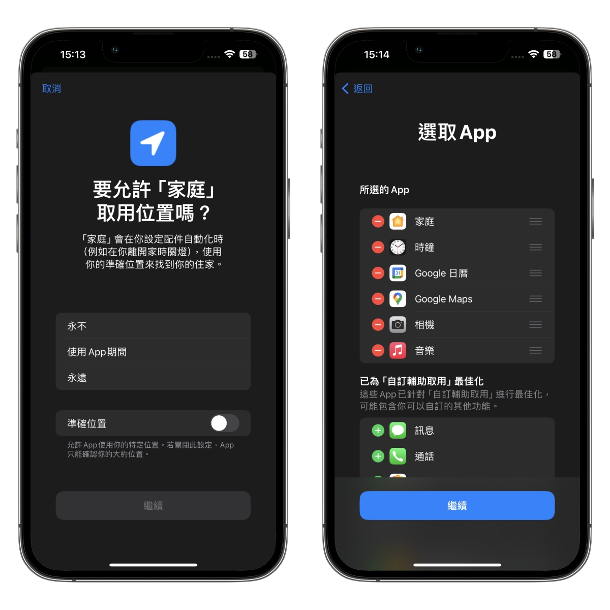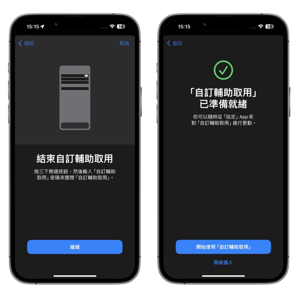 第一次使用會出現這畫面,點擊「設定自訂輔助取用」,然後點擊繼續。