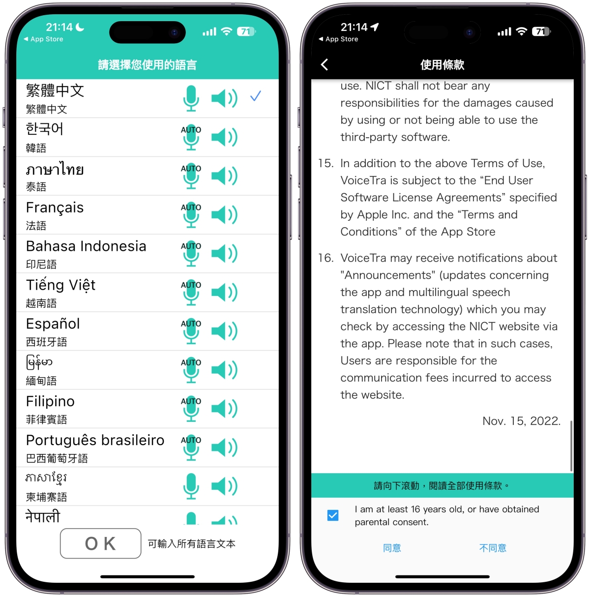 第一次安裝完會先選擇你自己的語言,沒意外大家應該都是選繁體中文啦,然後使用條款有好幾個同意,都是下拉到底按同意就好。