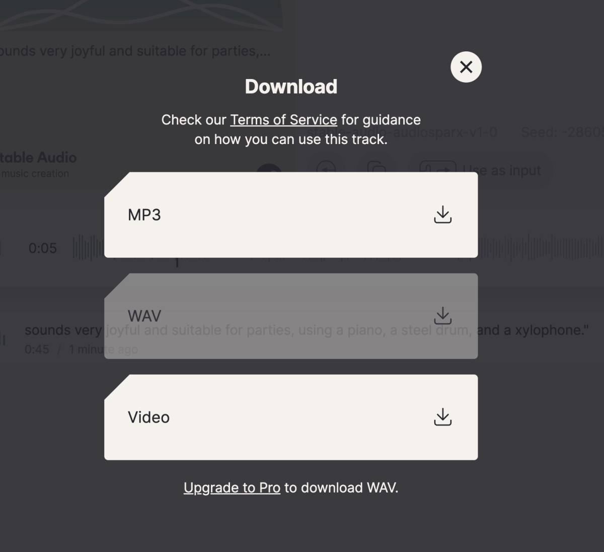 目前一共有三種方案可以使用,免費/專業跟企業,最大差異就是免費的僅限個人使用,不能用於商業用途,而專業跟企業就差在秒數跟可產生的的音樂數量。