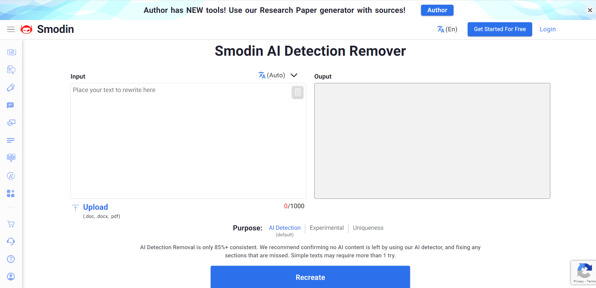 這又是另一款簡單易用的工具,只需按一下即可輸出內容。此外,它還針對包括 GPTZero 在內的七款 AI 偵測器進行了測試,因此它能夠識別 GPT 內容,並將其轉換為看起來像是人工編寫的內容。