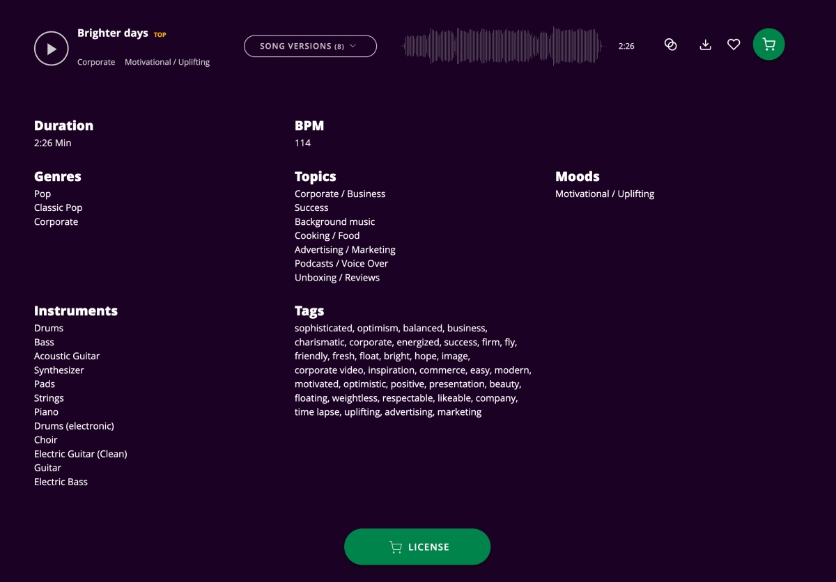 這邊就有明確的說明,可以用於個人或商用,大約有 200 首以上可以用,只是要有版權宣告說明,缺點是不是高音質檔案,就看你能接受的程度到哪了。