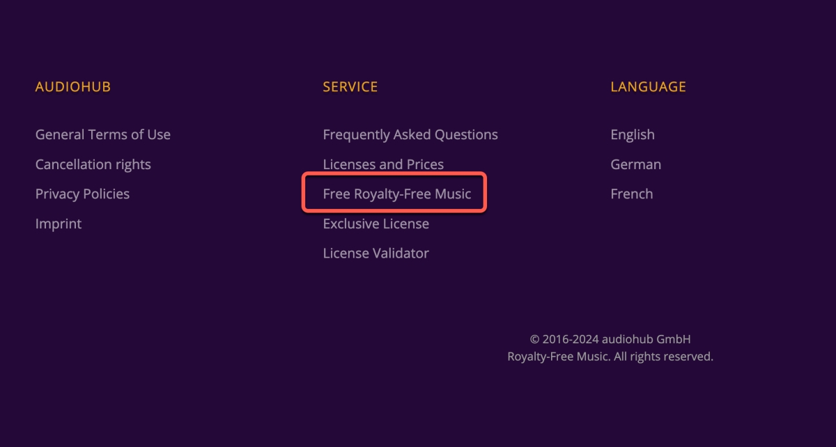 或直接點這裡:https://audiohub.com/free-royalty-free-music