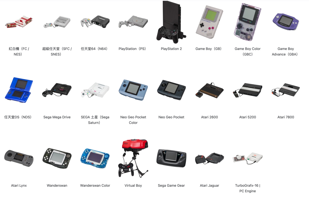 再往下是以遊戲機分類,其實最經典還是紅白機,再來就是像超任、Game Boy 還有 Sega,這都是時代的眼淚啊(?)。