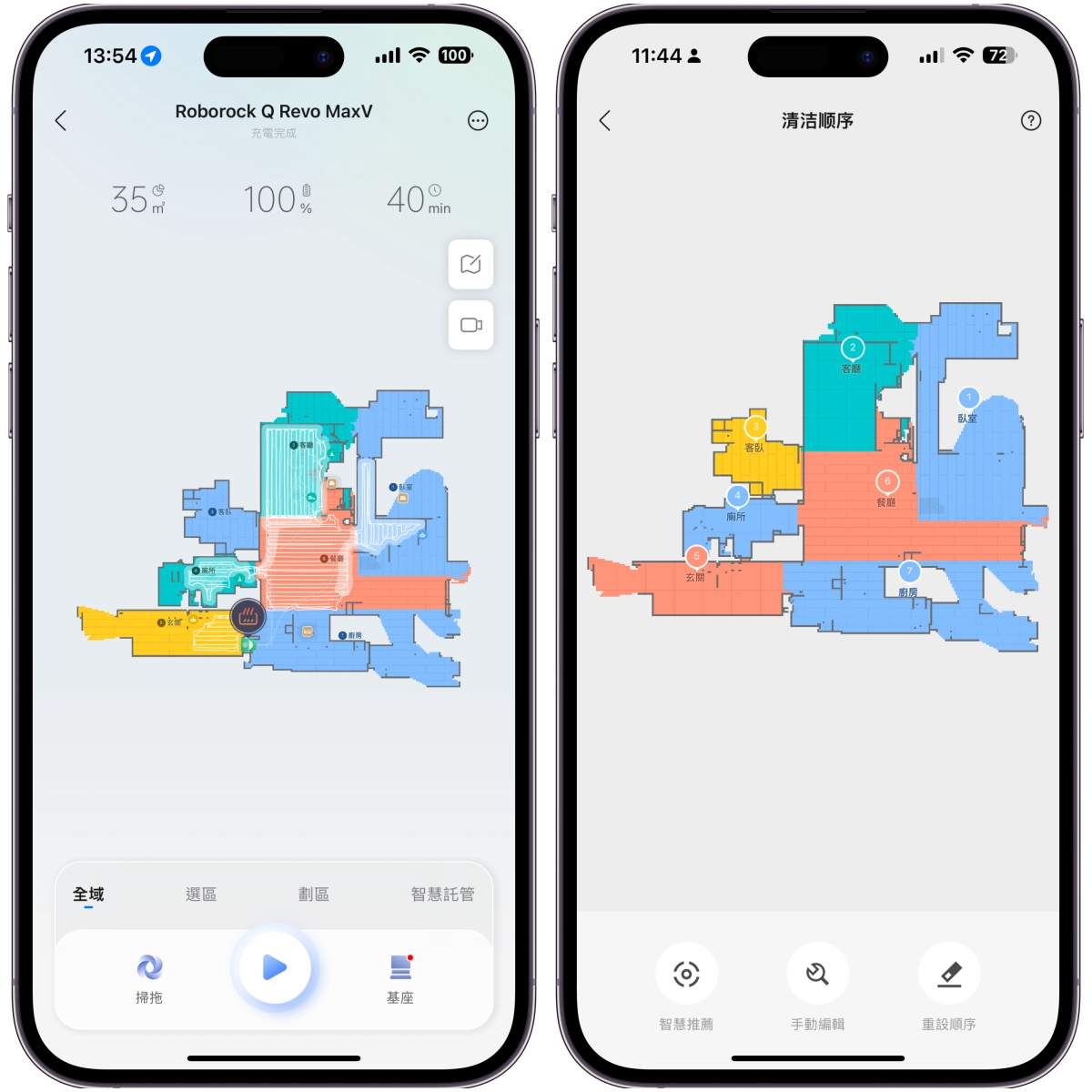 清潔順序的設定也很重要,直接選擇智慧推薦的話,會自動幫你安排好由外而內打掃,就不會重覆經過掃好的地方。