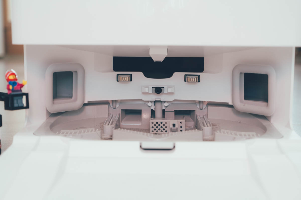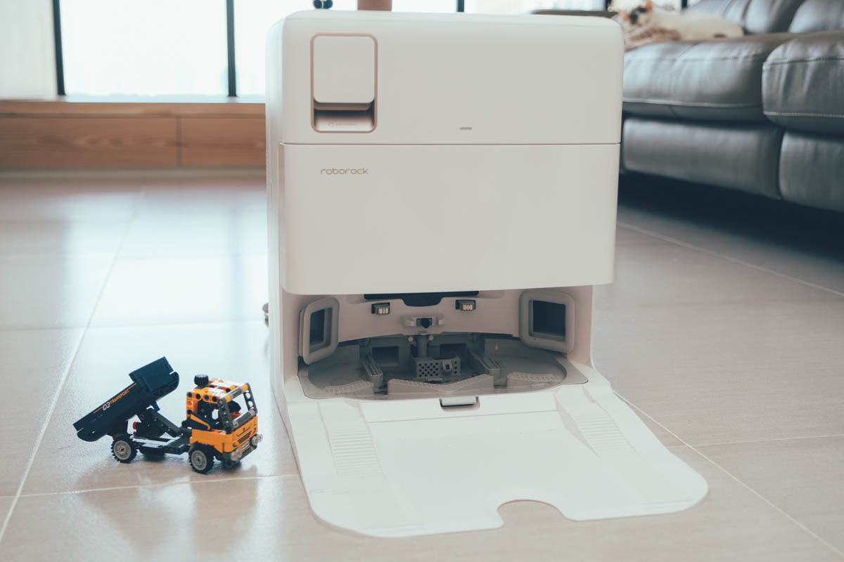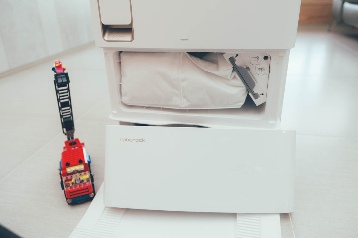 具有 HEPA 濾網的集塵盒,可避免二次空氣汙染,透過自動集塵我們可以來看一下,真的是蠻乾淨的,有些人都不太相信還會一直拿出來檢查,我自己除了要換濾網時會將集塵盒拿出來,不然真的是沒什麼機會看到它了,下一代搞不好只剩下換濾網的地方了。