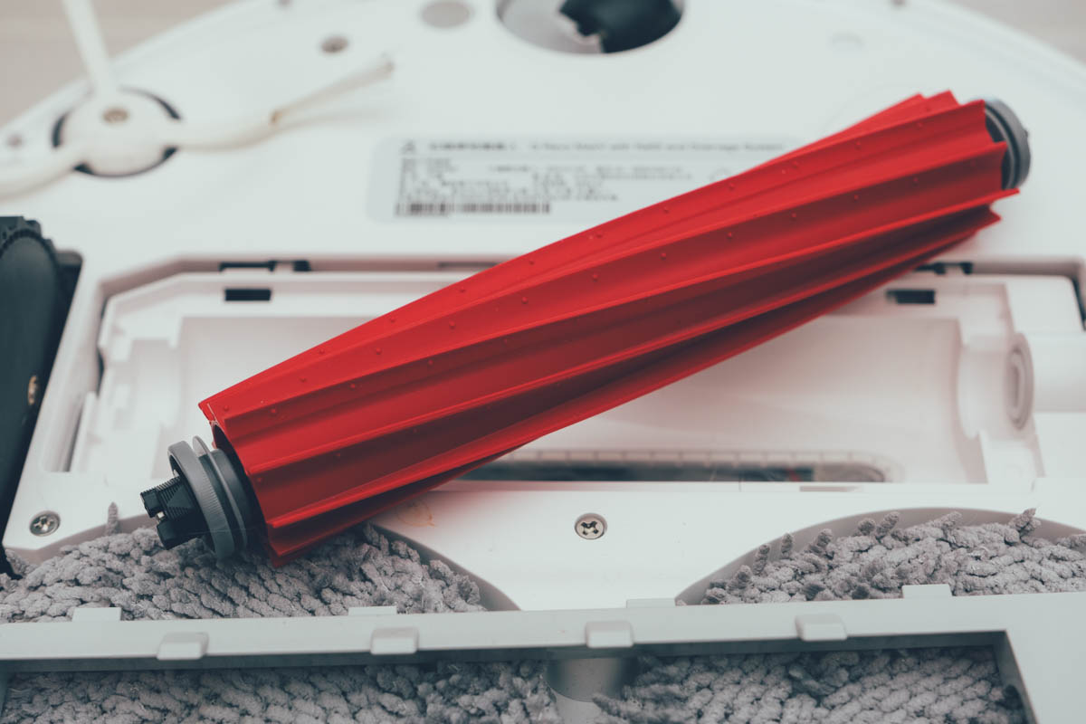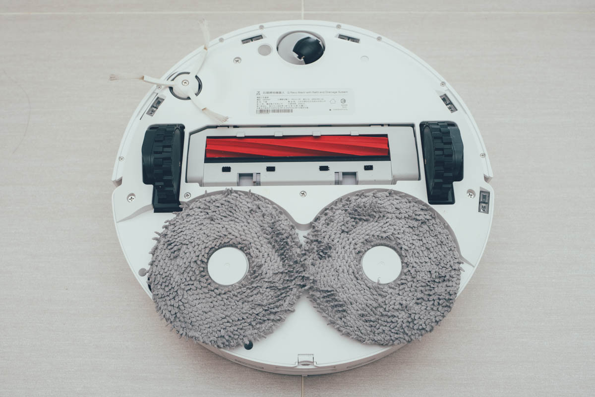 底部採用了五顆防墜落偵測器,中間為單橡膠滾刷,現在採用這樣的橡膠滾刷比起傳統毛刷,清潔力更好,耗損速度也變慢。